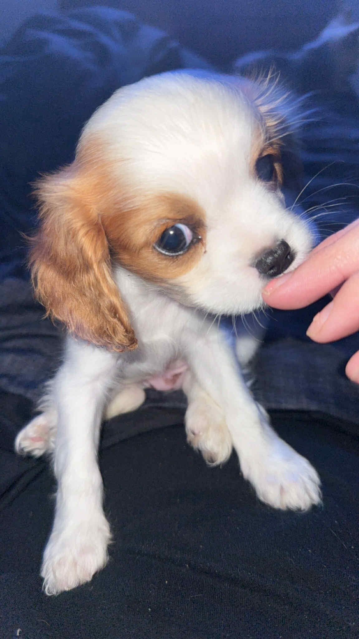 This is nugget a cavalier, King Charles spaniel. Nugget is very fun and playful and raised around children. He comes fully vaccinated and microchip and registered in a one year health guarantee.